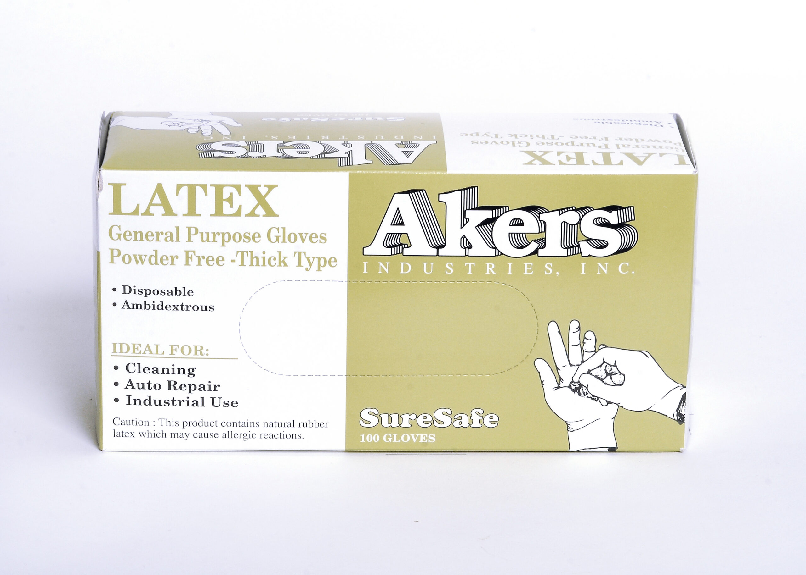 / Akers Industrial Latex gloves.Powder Free, Large, White Box Of 100ct 8mil