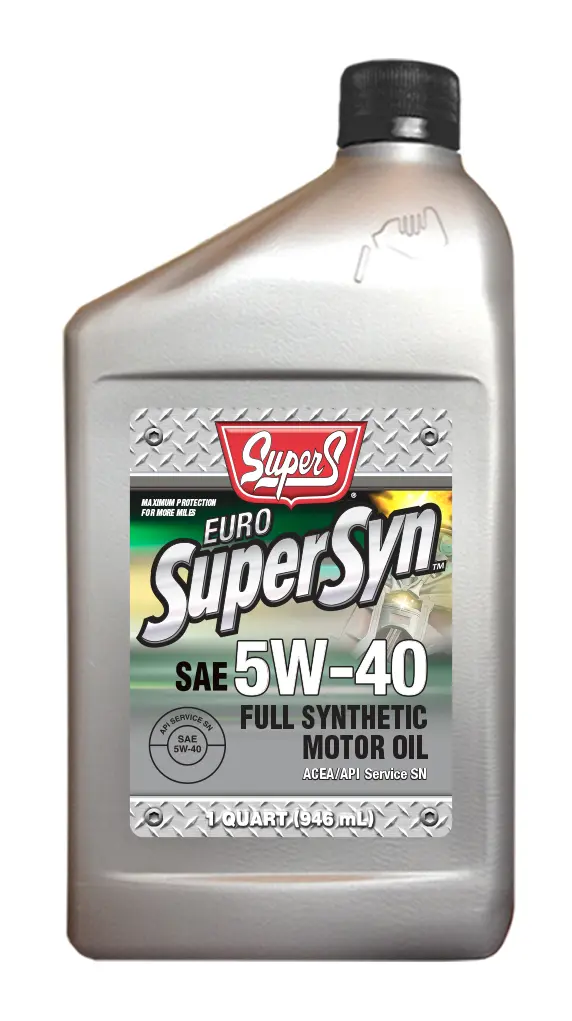 Super S Euro SuperSyn Full Synthetic Motor Oil provides among the highest levels of performance and protection offered in passenger car motor oils (PCMOs) by using superior additive technology and 100% synthetic base oils. They meet or exceed specifications for wear control, piston deposits, cleanliness, varnish, sludge, oxidation control, emission system and seal compatibility. 5W-40 Meets or exceeds: European classifications: ACEA A3/B4, BMW Longlife-01, MB P229.3, VW 501.01, VW 502.00/505.01, Porsche A40, PSA B71 2296, Renault 0700/0710 and is suitable for use in Opel GM-LL B-025 and Ford WSS-M2C913-C. It also meets or exceeds American Petroleum Institute (API) SN service classification.